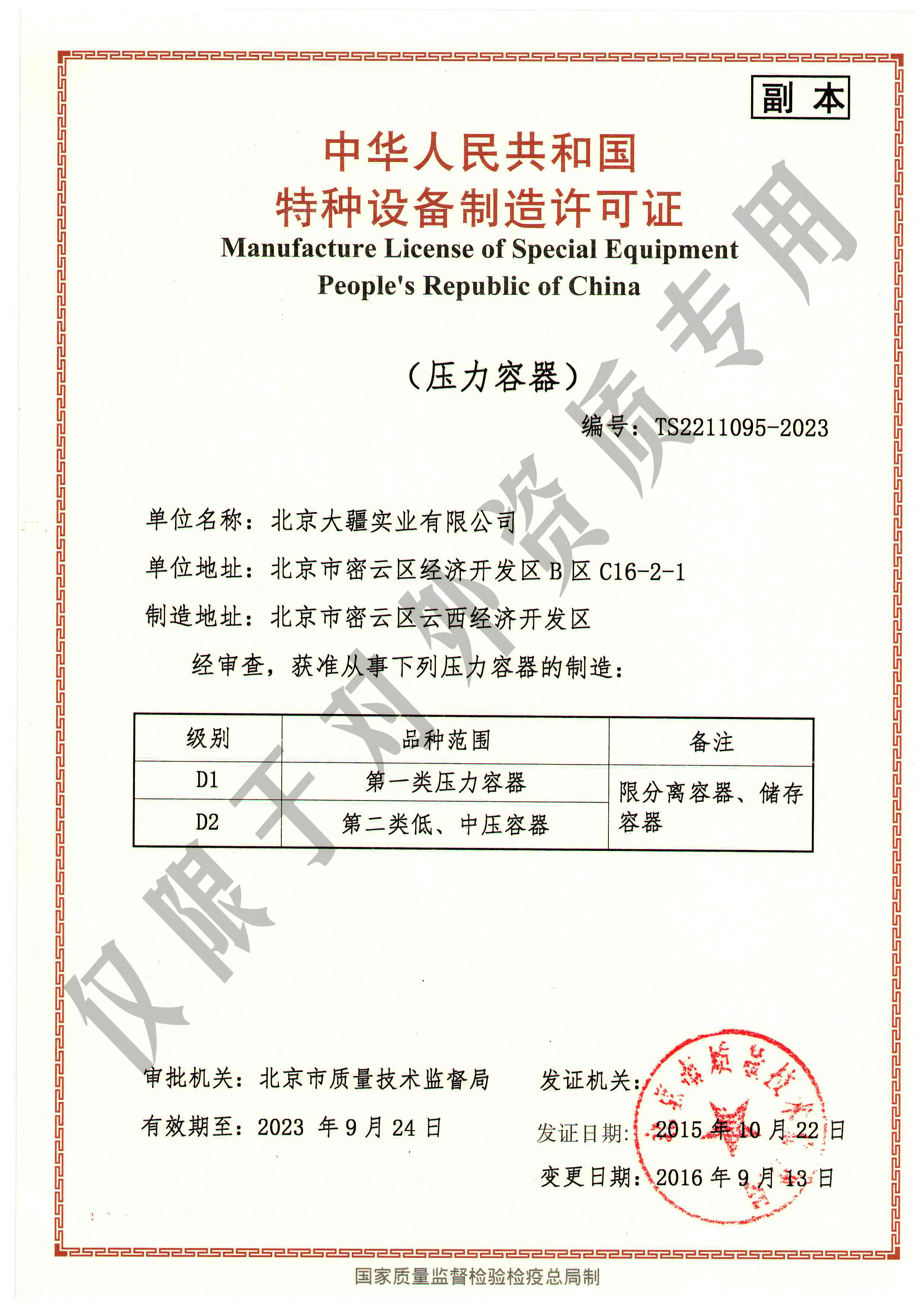 一種氣壓罐排氣泄壓裝置實(shí)用新型專利證書