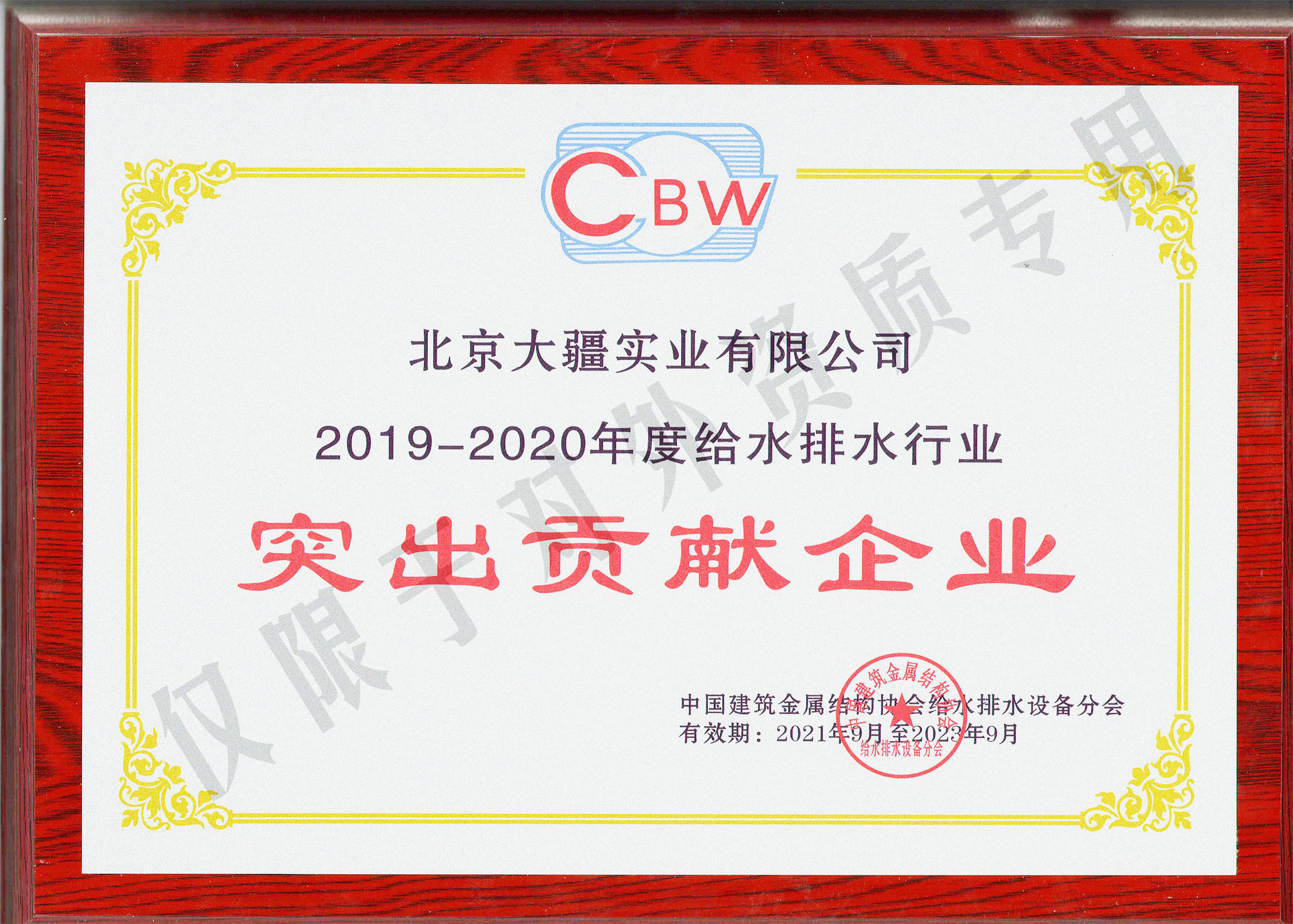 給水排水協(xié)會2019-2020年度給水排水行業(yè)突出貢獻(xiàn)企業(yè)會證書